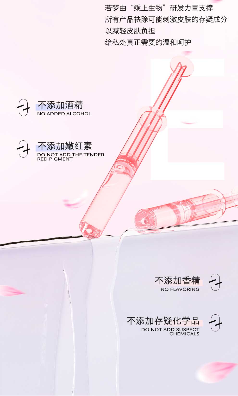 若梦由乘上生物研发力量支撑,所有产品祛除可能刺激皮肤的存疑成分,以减轻皮肤负担,给私处真正需要的温和呵护。